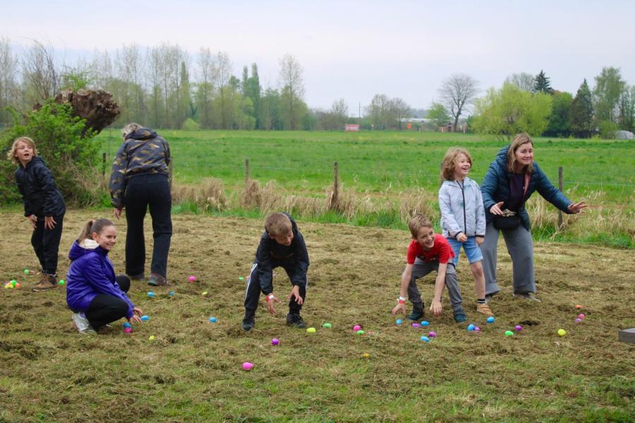 Ondanks het wisselvallige weer genoten kinderen en ouders volop. Voor de ouders was er zelfs een speciale eierenraap dankzij Wijndomein Wideux!